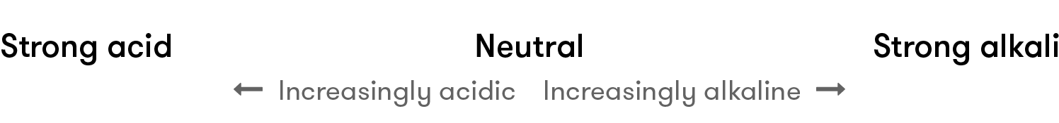 Pure water has a pH value of 7, and is considered neutral. Values below 7 are acidic, and values above 7 are called basic, or alkaline. Most drinking water usually sits between 6.5 and 7.5. Vinegar has a pH of 3, a cola drink 2.5 and battery acid around 0 or 1 (strongly acidic). On the other end of the scale, heavy duty cleaning products can have pH of 12–14 (strongly alkaline). The pH scale is logarithmic, which means that each value is ten times stronger or weaker than those on either side of it. So, a pH of 4 is 10 times more acidic than a pH of 5, and 100 times more acidic than a pH of 6.