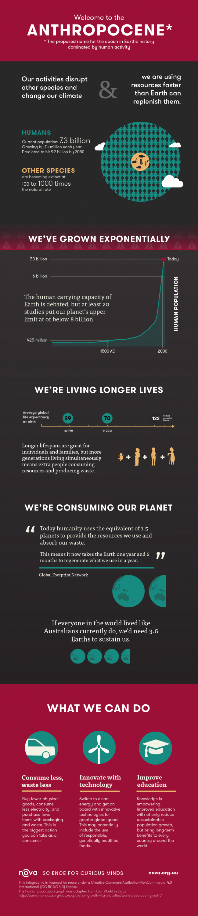 Our activities disrupt other species and change our climate, and we are using resources faster than Earth can replenish them.