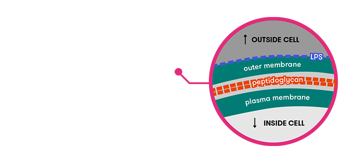 Separates cell from environment and regulates inward/outward traffic. Sometimes contains lipopolysaccaride (LPS) and/or peptidoglycan, both which have a unique signature, allowing the bacterium to help our body monitor the presence of other microbes.